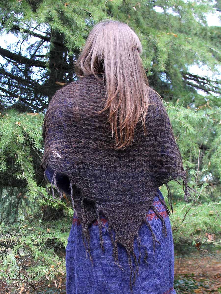Among the rectangular women’s alpaca shawl styles, we find a very unique solid-colour shawl, the Geneviève shawl. This shawl elegantly combines two types of workmanship: an openwork knit and a splendid crochet border. This union creates an elegant and refined shawl.