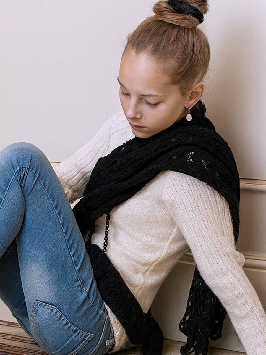 Among the triangular styles, the Cinzia collection stands out, entirely crocheted: each piece is unique, with different colors and workmanship. This is a timeless women’s alpaca shawl that has always been a fashion must-have.